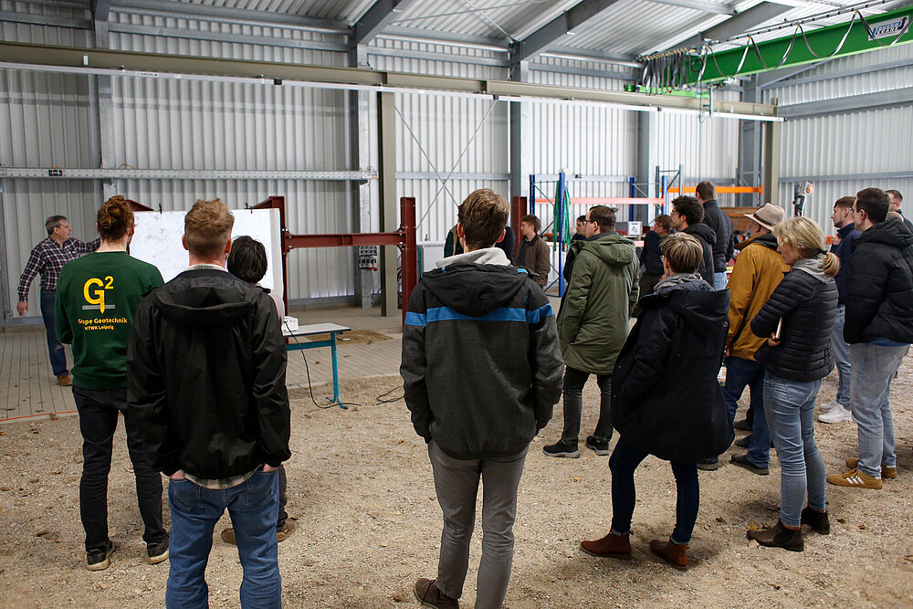 Ergänzend zur Vorführung erhielten die Gäste am GeoTechnikum einen Einblick in die bodenmechanischen und umwelttechnischen Labore sowie in die beiden Versuchshallen mit umfassender Messtechnik und eigenen Geräten für die Drucksondierung der Hochschule.
