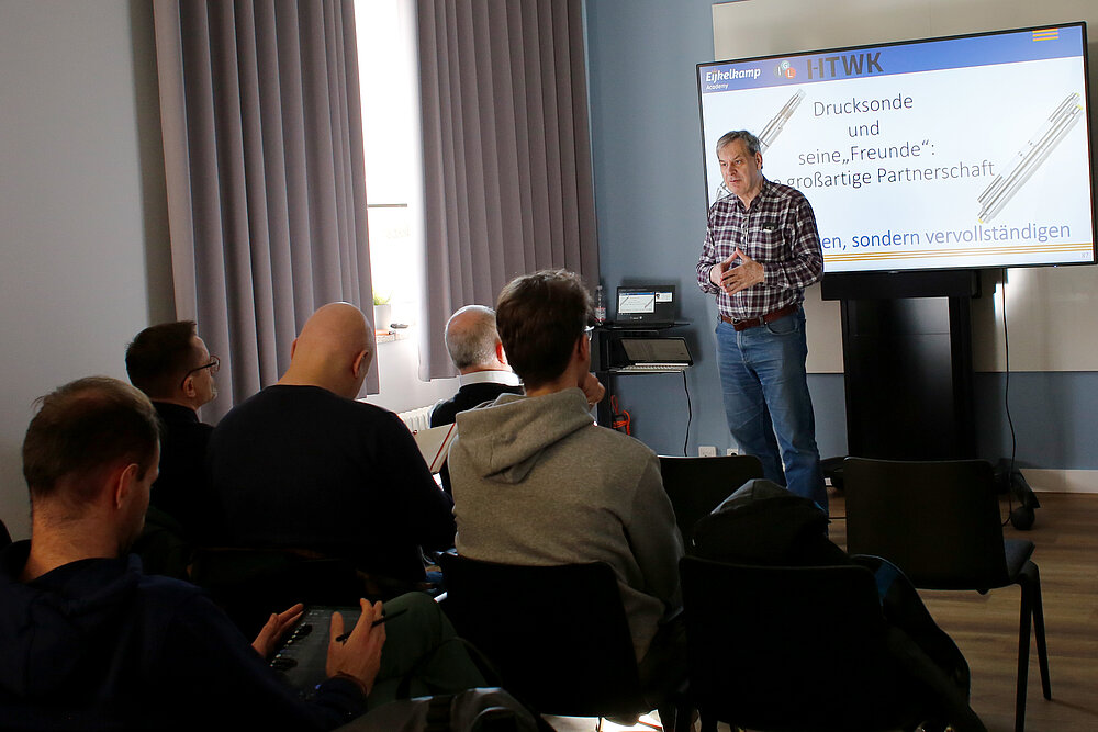 Zum DemoDay reisten rund 35 Vertreterinnen und Vertreter von 15 Firmen aus ganz Deutschland an. Die Teilnehmenden, darunter auch Studierende der Hochschule, erhielten In Präsentationen und Demonstrationen praxisnahe Einblicke in Technik, Einsatzmöglichkeiten, Durchführung sowie Interpretation von Drucksondierungen. Sie konnten das Verfahren dabei nicht nur theoretisch kennenlernen, sondern am praktischen Beispiel in den Versuchshallen am GeoTechnikum auch live erleben und sogar selber sondieren.
