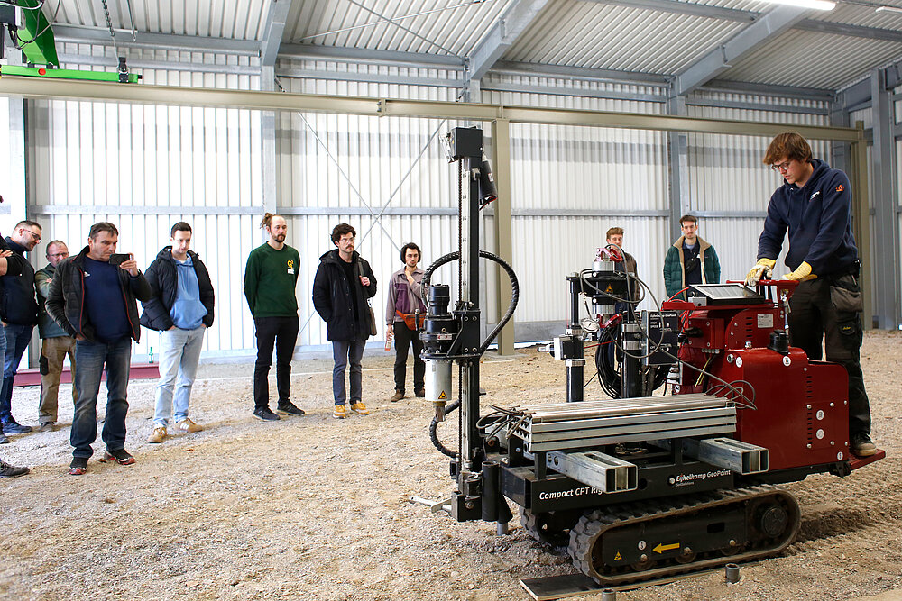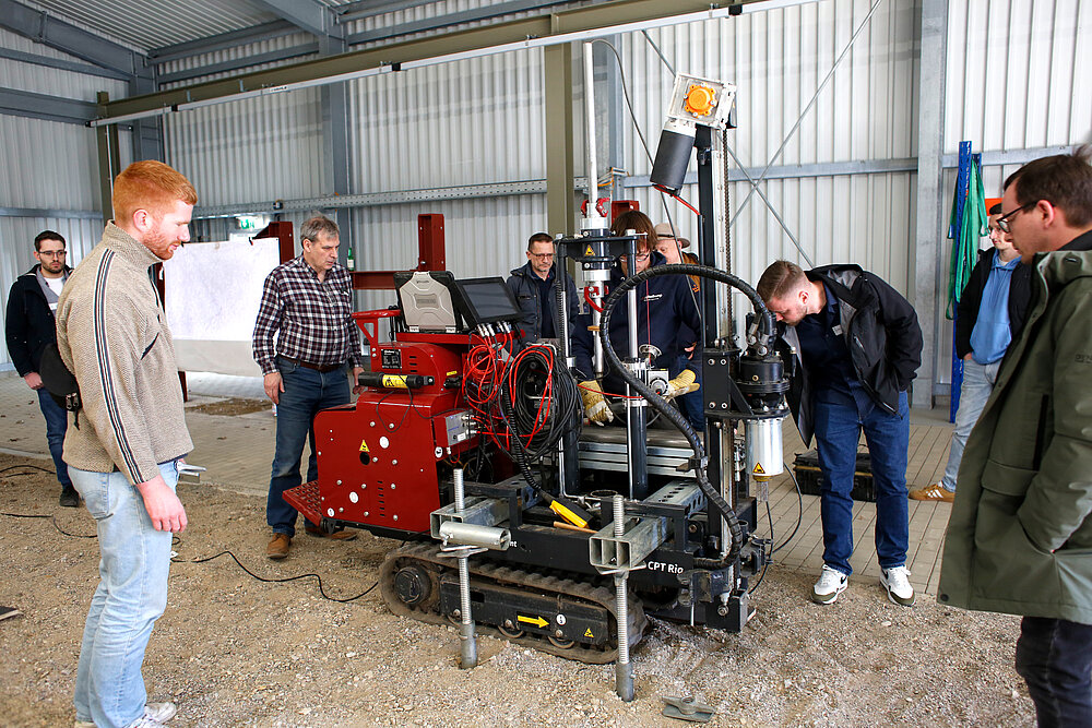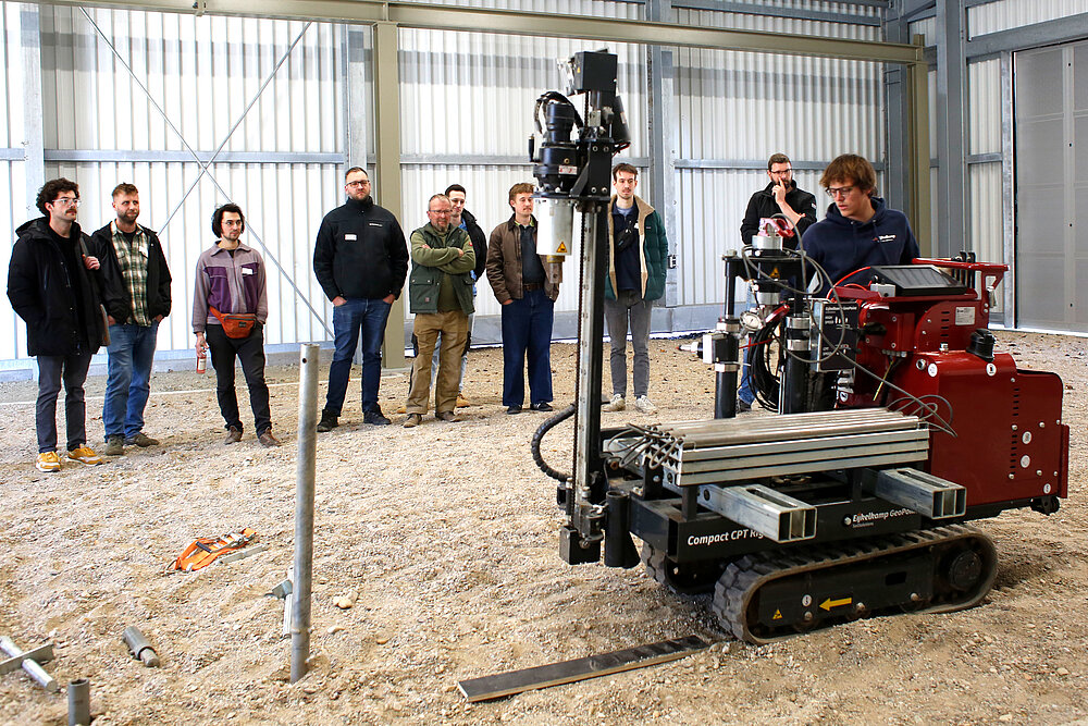 Der Demonstrationstag am Mittwoch, den 19. März 2025, wurde gemeinsam vom IGL und Royal Eijkelkamp B.V. veranstaltet. Das niederländische Unternehmen Eijkelkamp entwickelt und produziert seit über 110 Jahren Geräte für die Bodenuntersuchung. Seit rund zwei Jahren arbeiten Eijkelkamp und das IGL am GeoTechnikum gemeinsam an Forschungsfragen zur Verbesserung der Drucksondiertechnik. Aus dieser Kooperation entstand die Idee, das Thema in der Region stärker sichtbar zu machen.