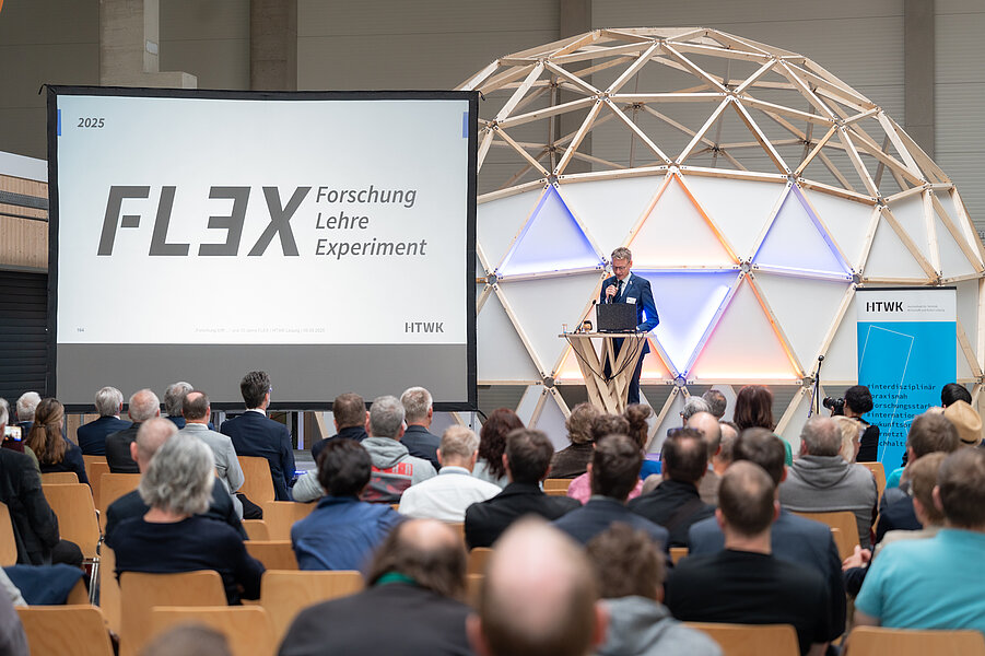 Im HolzBauForschungsZentrum der HTWK Leipzig feierte die Forschungsgruppe FLEX heute mit 250 Gästen aus Wirtschaft, Wissenschaft und Politik