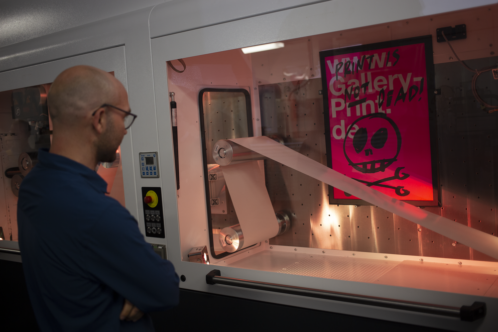 Die Beschichtungsanlage der „MicroFLEX“-Reihe von 3D Micromac ist Teil des neuen Kompetenzzentrums „Smart Surfaces“. Sie steht nun im Drucksaal der HTWK Leipzig für Lehre und Forschung zur Verfügung. Optisch erinnert sie an eine Druckmaschine, bei denen Papierbahnen automatisch von Rolle zu Rolle geführt werden, dabei verschiedene Druckwerke durchlaufen und am Ende vierfarbig in einem Durchgang bedruckt herauskommen – nur verbindet die neue Beschichtungsanlage mehrere unterschiedliche Druckverfahren und kann neben Papier auch Folien und Glas befördern und diese mit zum Beispiel elektrisch leifähigen, halbleitenden oder biologisch aktiven „Farben“ bedrucken.
