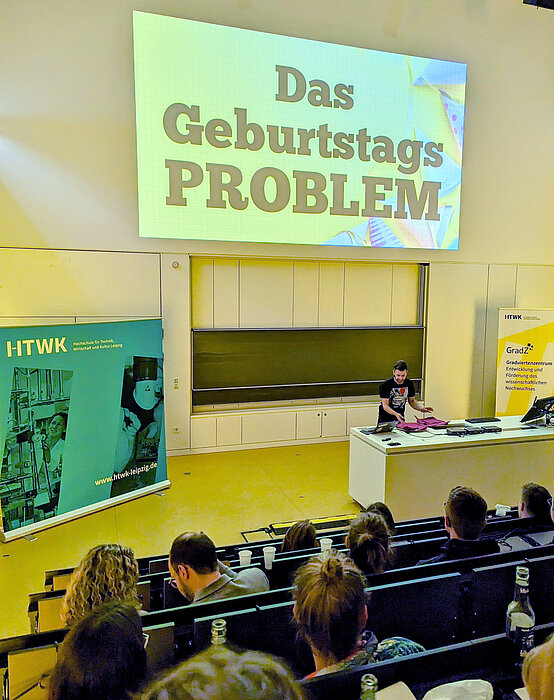 Vier Promovierende der HTWK Leipzig stellten ihre Doktorarbeiten beim HTWK Science Slam vor