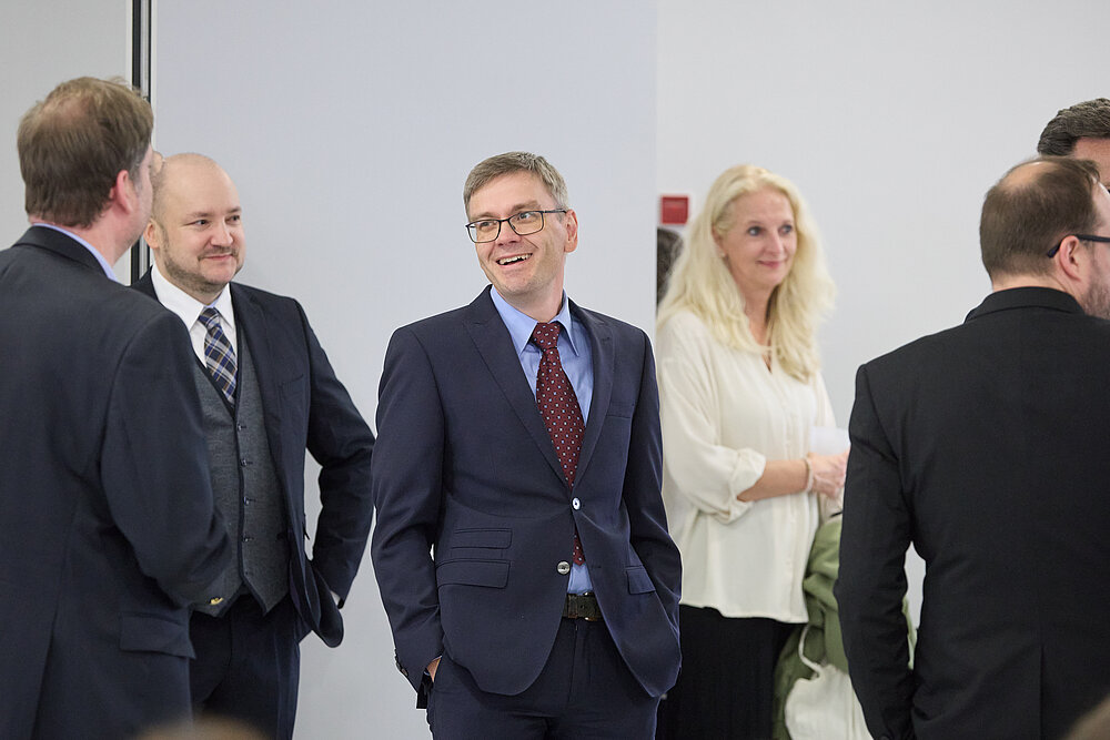 Nach der Begrüßung durch den Dekan, Prof. Ulf Schemmert, überbrachte der Gründungsdekan der Fakultät und designierte Rektor der HTWK Leipzig, Prof. Jean-Alexander Müller ein Grußwort aus der Hochschule. Für die Stifterin war Jörg Fiedler, Leiter des Hubverbundes Frankfurt/Main bei der Deutschen Telekom, gekommen, der anschließend zu den Absolventinnen und Absolventen sprach.