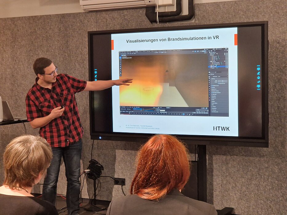 - Toni Nabrotzky (ebenfalls Platz 1, dotiert mit 2.500 Euro) mit der Arbeit „Entwicklung einer Schnittstelle zur Visualisierung von Brandsimulationen im virtuellen Raum“, betreut von Prof. Dr. Ing. André Ihde (Fakultät Bauwesen).