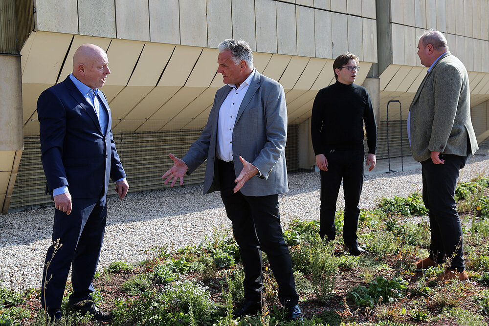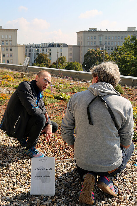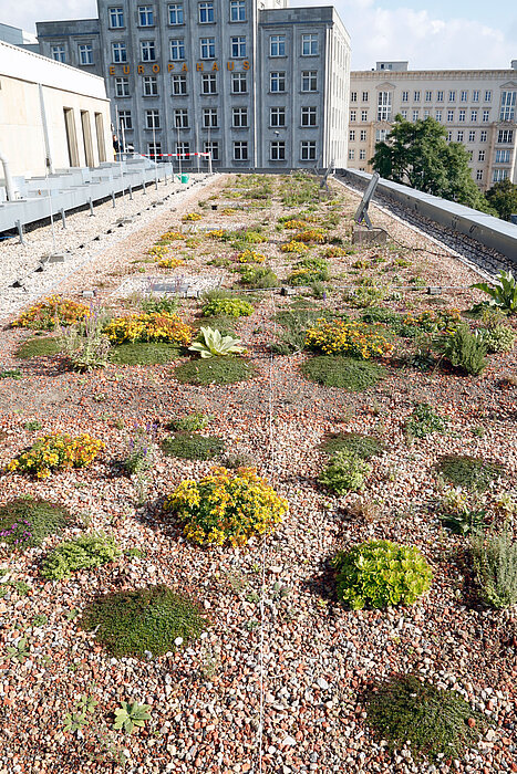 Das Gewandhaus zu Leipzig ersetzt die Kiesflächen auf seinem Flachdach teilweise durch Dachbegrünung, um einen Beitrag für eine klimaresilientere Stadt zu leisten. Damit die Pflanzen in einem guten Zustand bleiben, sind vielfältige Maßnahmen erforderlich. Um diese zu erproben und Erkenntnisse über das Management von Gründächern zu gewinnen, arbeitet das Gewandhaus eng mit Forschungseinrichtungen zusammen. Dazu gehören Forschende der HTWK Leipzig, des Forschungs- und Transferzentrums Leipzig (FTZ) und des Helmholtz-Zentrums für Umweltforschung (UFZ) in Leipzig.