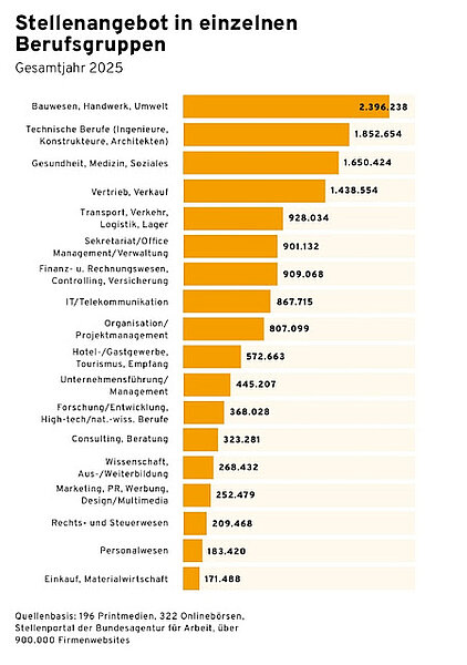 Grenz: Leider ja, denn eine nachhaltige konjunkturelle Erholung ist trotz der höheren öffentlichen Investitionen mittelfristig nicht in Sicht. Die schwierige wirtschaftliche Lage spiegelt sich auch im Stellenangebot wider. Im Gesamtjahr 2025 schrieben Unternehmen und Behörden bundesweit rund 11 Millionen Stellen öffentlich aus. Das waren 5 Prozent weniger als 2024. In fast allen Berufsgruppen ging das Stellenangebot im Jahresvergleich zurück.